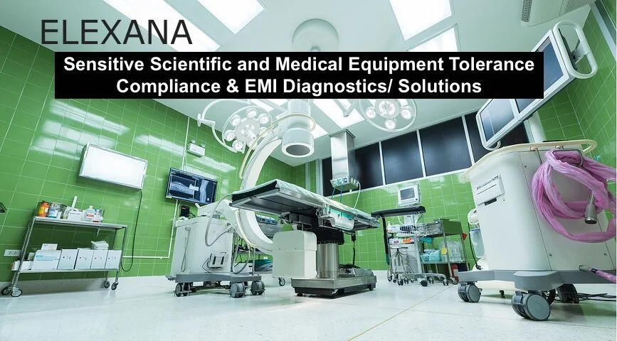 Medical laboratory EMI diagnostics and analysis for MRI, NMR, EKG, and EEG equipment on-site compliance
