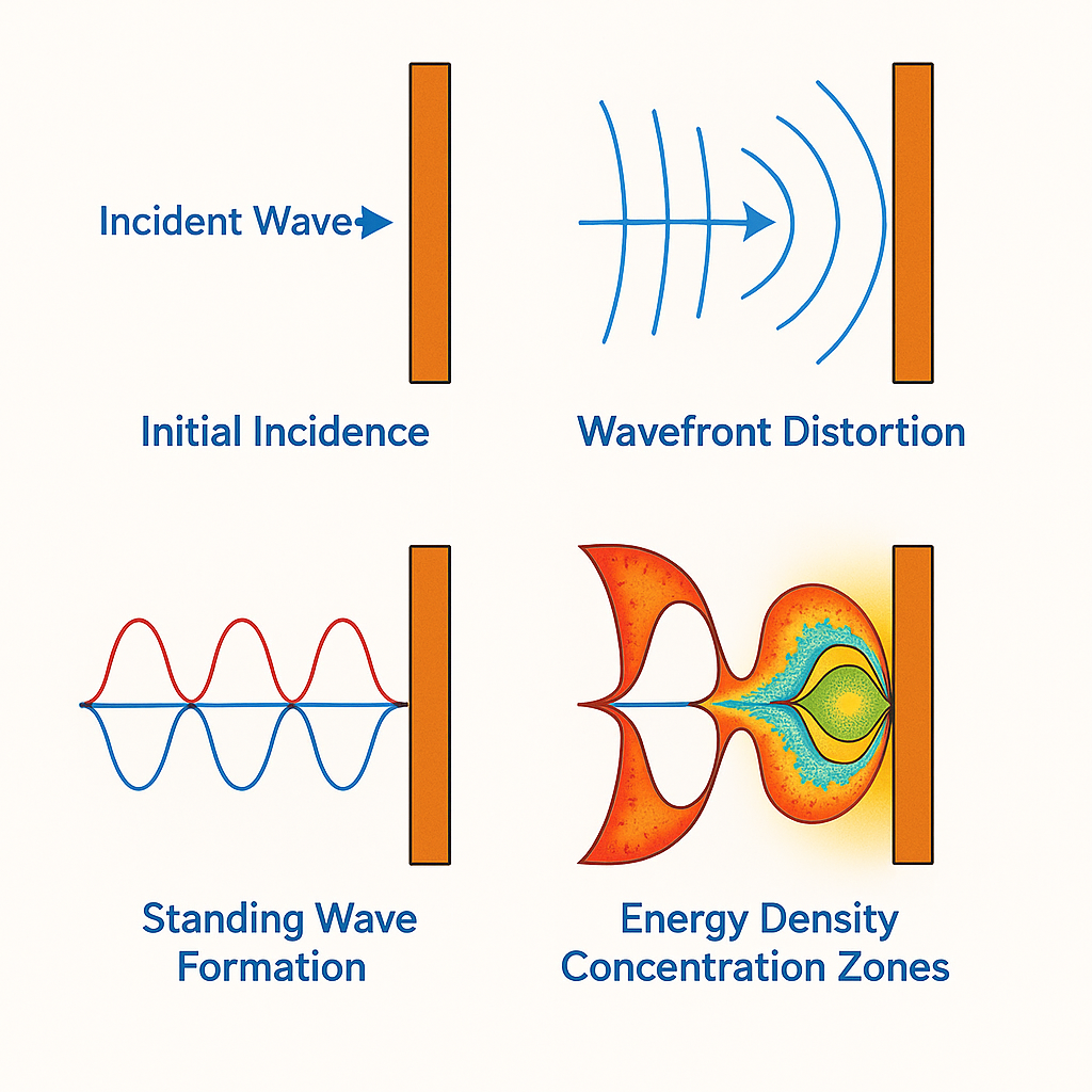 When an incident wave and its reflective wave collide, a third standing wave is created. This standing wave will have a higher power density than the original incident wave while additionally introducing a new set of harmonic transients to the environment, thereby augmenting the interruptive effect of the original incident wave. Also, depending on the power density of the incident wave and the absorptive/reflective qualities of the metals, then many fractals of standing waves could then be created. This is why we are very much against any partial RF shielding.
