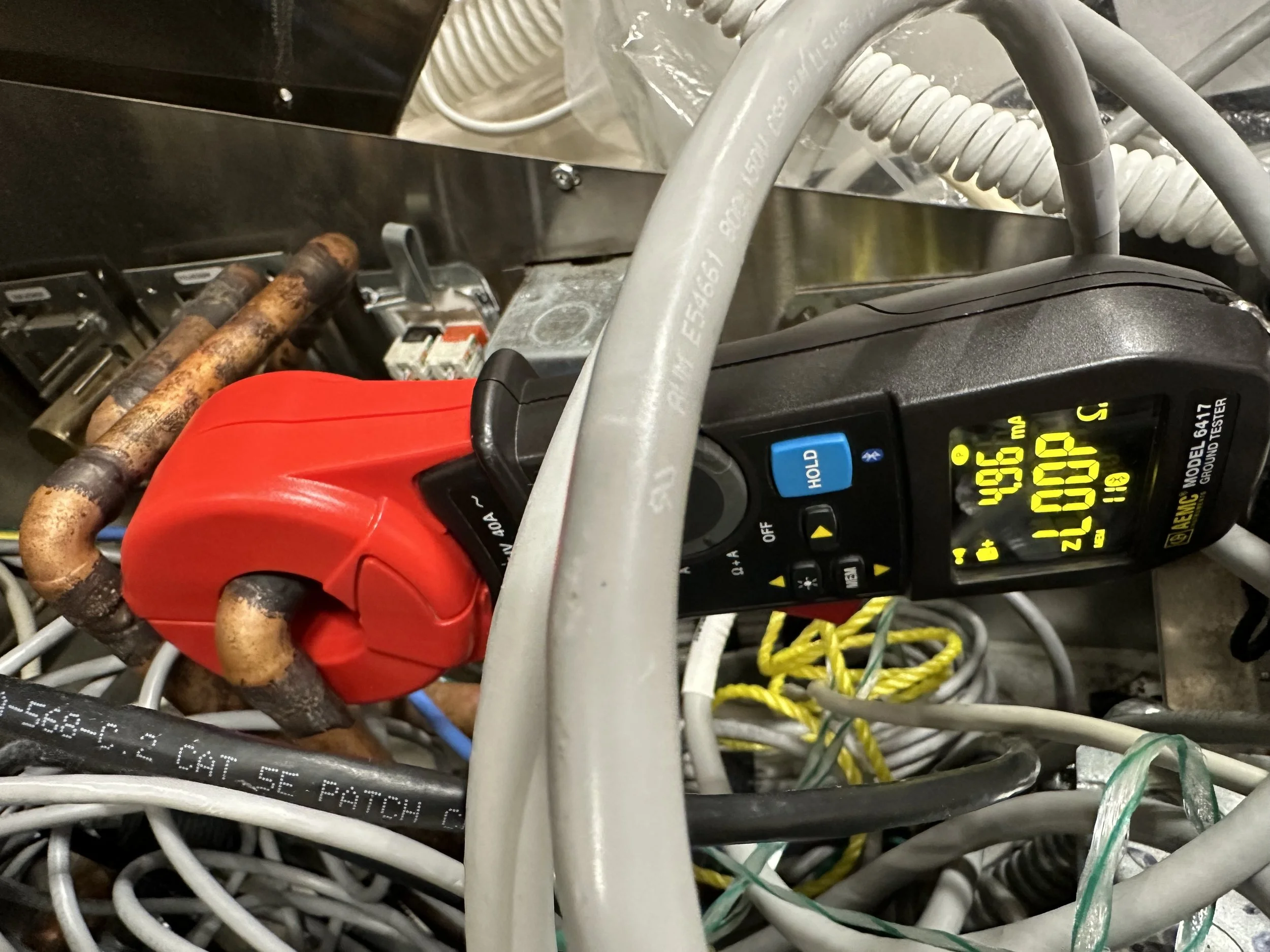This is one of several correct tools, an AEMC 6417 Ground Tester, for measuring a system ground that Elexana utilizes.