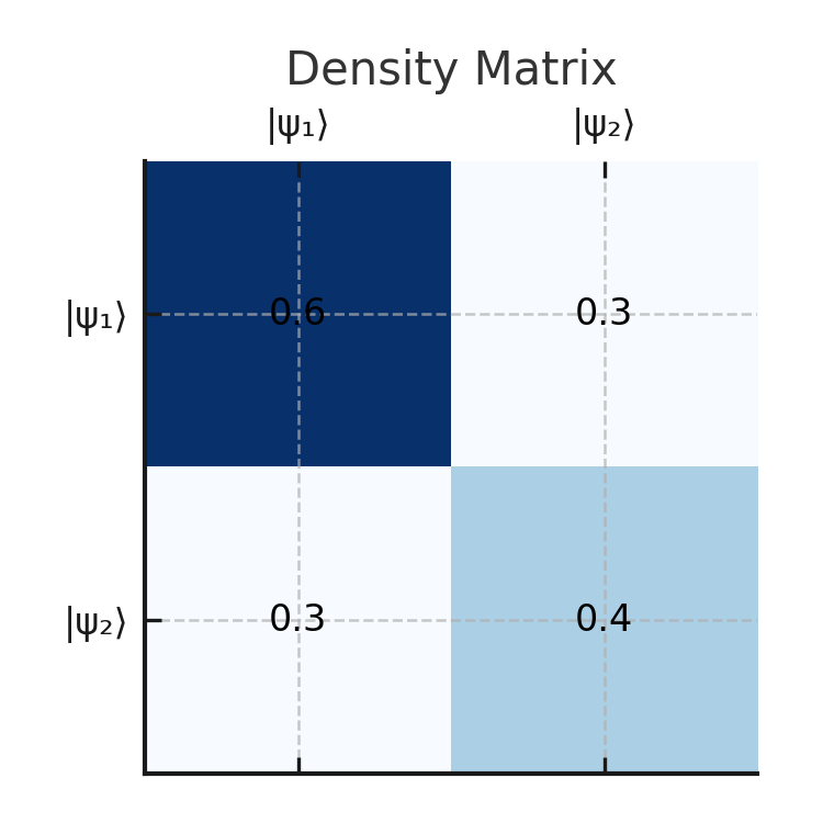 ρ = \[∣ψ1∣2,ψ1ψ2∗\[|ψ₁|², ψ₁ψ₂*\[∣ψ1∣2,ψ1ψ2∗, ψ2ψ1∗,∣ψ2∣2ψ₂ψ₁*, |ψ₂|²ψ2ψ1∗,∣ψ2∣2] → \[∣ψ1∣2,0\[|ψ₁|², 0\[∣ψ1∣2,0, 0,∣ψ2∣20, |ψ₂|²0,∣ψ2∣2]